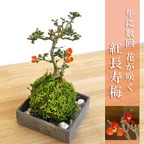- 四季咲きといって年に数回花が楽しめますので、季節を問わず贈り物に最適です。「長寿」の名前どおり、縁起のいい植物として知られ、「父の日」や「母の日、」「プレゼント」にぴったりの苔玉です。梅と同じバラ科ですが、梅ではなく草木瓜(くさぼけ)の一種です。細かい枝が多くでるので小さいながらも、風格ある作品に仕上がります。