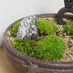 まるで古都の赴きある神社にいるかのうような雰囲気に。心落ち着かせてくれる苔と丸足のトウロウが醸し出す風景をお楽しみください。心落ち着かせてくれる苔(こけ)。 この小さな世界の中に雄大な景色が凝縮されています。 落ち着きある信楽焼鉢が苔をやさしく包み込みます。トウロウは自由に動かせますので、お好きな風景を創り出してください。