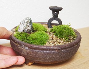 - 【セット内容】苔盆栽(信楽焼鉢)・・・1つ ・丸足灯篭(トウロウ)・・・1つ 育て方のしおり