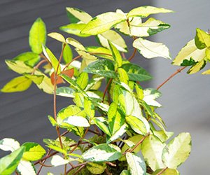 黄金(黄色に近いかも?)の斑が鮮やかな葉が1年中楽しめます。蔓(ツル)植物ですので垂れ下がるように育っていきます。 青々とした苔の色とコントラストがとても美しい苔玉。そんなテイカカズラを、炭化焼締器であわせてみました。敷石の色をお選びください。 ※植物は季節によって、冬枯れや開花前など写真とイメージが異なる場合がございます。あらかじめご了承ください。