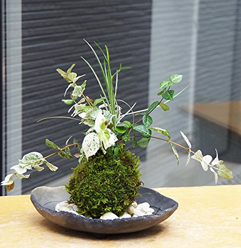 - 作品:幅18cm×高さ21cm×奥行き17cm(苔玉の玉は9cm×9cm) 器:幅20cm×高さ5cm×奥行き12cm