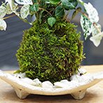 - 苔玉を持って軽くなったら水につけてください。目安は夏は1日から2日に1回・それ以外は2日~3日に1回