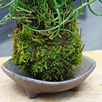 茎が、らせん状に育つ珍しい植物です。水が大好きなラセンイは暑さに強い夏にピッタリの苔玉です。個性的なラセンイ は1年を通して美しい緑(茎)が楽しめます。そんなラセンイを三つ足灰器であわせてみました。 敷石(黒石・白石)をお選びください。(敷石の効果はこちらをクリック) ※植物は季節によって写真とイメージが異なる場合がございます。あらかじめご了承ください。
