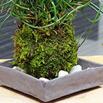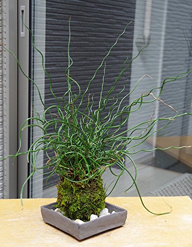 茎が、らせん状に育つ珍しい植物です。水が大好きなラセンイは暑さに強い夏にピッタリの苔玉です。個性的なラセンイ は1年を通して美しい緑(茎)が楽しめます。そんなラセンイを焼締角器であわせてみました。 敷石(黒石・白石)をお選びください。(敷石の効果はこちらをクリック) ※植物は季節によって写真とイメージが異なる場合がございます。あらかじめご了承ください。