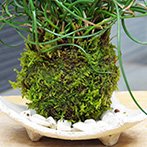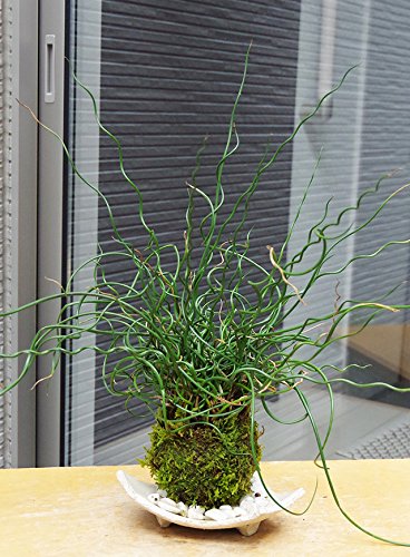 茎が、らせん状に育つ珍しい植物です。水が大好きなラセンイは暑さに強い夏にピッタリの苔玉です。個性的なラセンイ は1年を通して美しい緑(茎)が楽しめます。そんなラセンイを信楽焼白三つ足器であわせてみました。 敷石(黒石・白石)をお選びください。(敷石の効果はこちらをクリック) ※植物は季節によって写真とイメージが異なる場合がございます。あらかじめご了承ください。