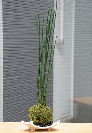 - 作品:幅20cm×高さ55cm×奥行き12cm(苔玉の玉は10cm~11cm) 器:幅18.5cm×高さ3cm×奥行き18.5cm