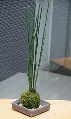 きりりとした立ち姿【トクサの苔玉・焼締角器セット】 (敷石の色(白))