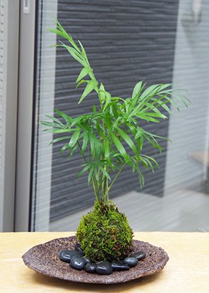 いつでもリゾート気分を味わえる苔玉【テーブルヤシの苔玉・くらま岩器セット】 (敷石の色(黒))
