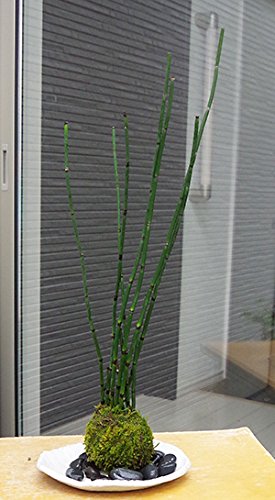 きりりとした立ち姿【トクサの苔玉・楕円白粉引器セット】 (敷石の色(黒))