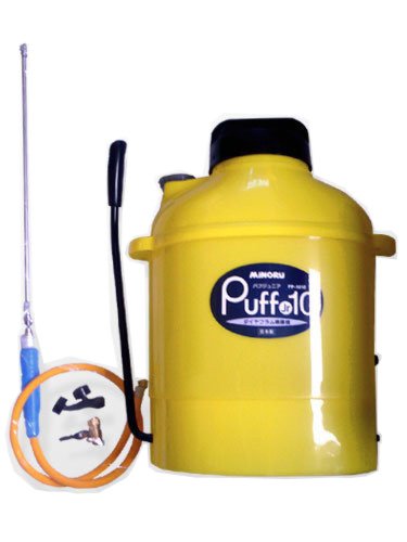 みのる パフジュニアの特徴 軽い背負い式のダイヤフラム式噴霧器です。 伸縮ノズル(48cm-91cm)を標準装備。 軽くて使いやすいから女性にもおススメです プラスチック製で業界最軽量の3.3kgです 軽いハンドル操作で十分な吐水量を発揮。 メンテナンスも容易です。 ・重量3.3kg ・薬液タンク容量10L ・希釈倍率カップ付 ・巾380 × 奥行200 × 高さ480mm ・墳口 縦型2頭口