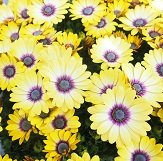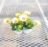 - レモンイエローの花弁にブルーの目が入る人気の品種です! 複数株を一緒に植えて大鉢に仕立てても見事です!
