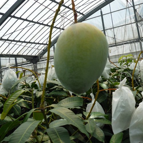 薄緑色の実で、沖縄産アップルマンゴー苗に比べると実は大きめ