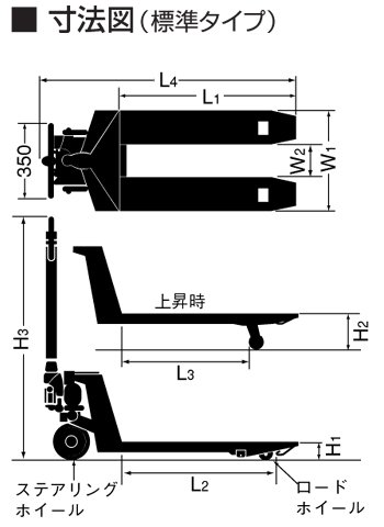 をくだ屋技研 キャッチパレットトラック ■ 軽くて手ざわりも機能性も良い、樹脂製ハンドルを採用。 ■ ステアリングホイールの軽量化によって、ハンドリングがより スムーズになりました。 ■ リフト時の過積載を防ぐ、自動積荷チェックバルブ内蔵。 ■ 正常なバルブ状態を維持する、バルブクリーニング装置内蔵。 ■ OPKオリジナルのノーパッキング油圧ポンプに、ワンタッチの ニュートラルレバーで、負荷時でも軽々走行・操作できます。 ◇仕様◇ 型 式:CP- 15L- 140 最大積載量:1500kg 最低位:80mm(H1) 最高位:200mm(H2) フォーク外幅:685㎜(W1) フォーク長さ:1400㎜×1280㎜×1120㎜(L1×L2×L3) フォーク内幅:385㎜(W2) 全長:1810mm(L4) 全高:1170mm(L5) 車体重量:93kg