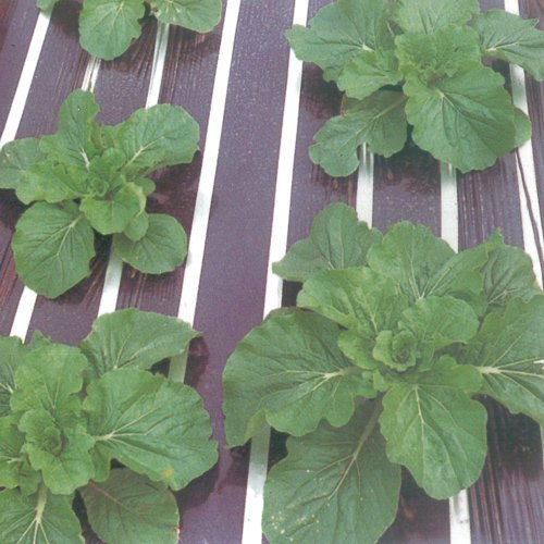 ・昆虫の色彩反応を応用したマルチフィルムです。表面には銀色のすじが入れてあります。