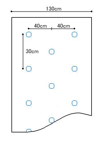 雑草の発芽を抑え除草の手間が軽減 黒マルチは透明マルチと比べ、雑草の抑制効果が高いです。 ホールマルチはフィルムに定植用の穴を明ける手間が省けます。そして均一に穴が開いていますので、苗が等間隔に植えつけられ、生育が均一になります。 一般的なマルチングの効用として地中水分の確保、肥料の流亡を抑える。土が固くならない、病気の発生が少なくなる等々があります。 サイズ 幅 130cm 長さ 200m 孔60mm 規格 3列穴 チドリ 株間 30cm。ホールマルチの穴は、2次加工のため、マルチ幅中心部より数センチずれている場合がございます。