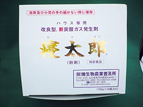 10アール当り、100g入りの小箱(14袋入)をハウスの天井より3~4ケース(42~56袋)吊り下げるだけで40~50日間にわたって炭酸ガスを発生する無公害・安全で低コストの画期的な資材。