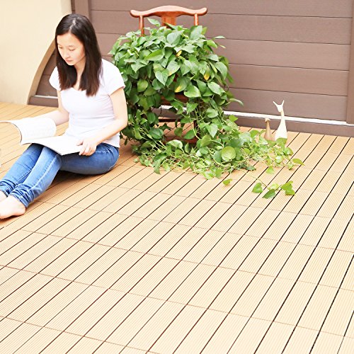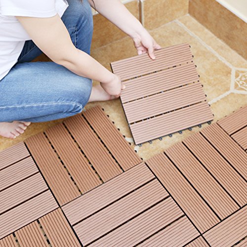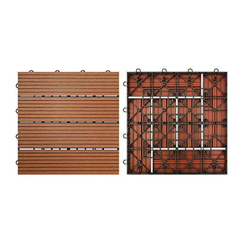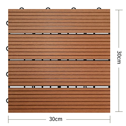 【HY】 ウッドデッキ 人工木 樹脂 ウッドパネル ウッドタイル 27枚入り 厚さ22mm 全6色 3タイプ ジョイントタイル デッキ 腐りにくい ガーデン ベランダ庭 玄関 (Bタイプ_27枚, ダークブラウン)