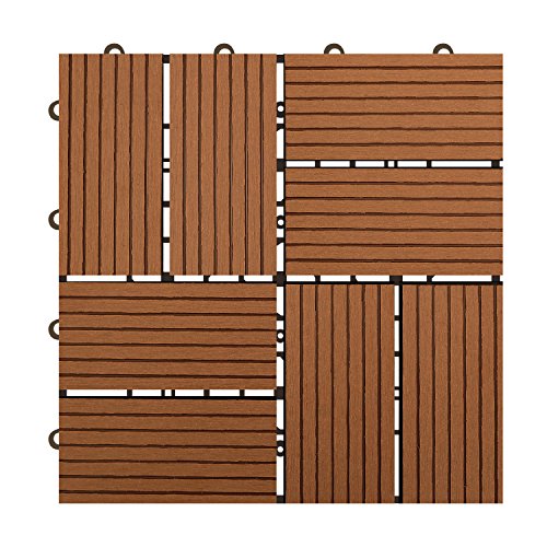 【HY】 ウッドデッキ 人工木 樹脂 ウッドパネル ウッドタイル 27枚入り 厚さ22mm 全6色 3タイプ ジョイントタイル デッキ 腐りにくい ガーデン ベランダ庭 玄関 (Cタイプ_27枚, ライトブラウン)