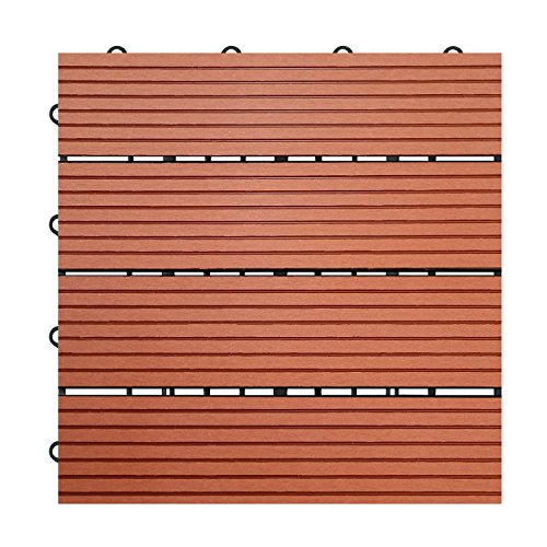 【HY】 ウッドデッキ 人工木 樹脂 ウッドパネル ウッドタイル 27枚入り 厚さ22mm 全6色 3タイプ ジョイントタイル デッキ 腐りにくい ガーデン ベランダ庭 玄関 (Aタイプ_27枚, レッド)
