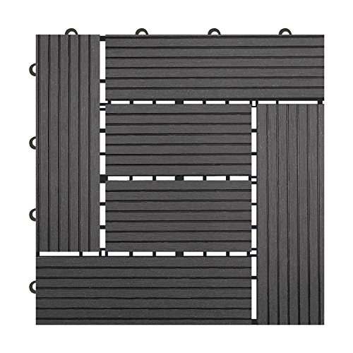 【HY】 ウッドデッキ 人工木 樹脂 ウッドパネル ウッドタイル 27枚入り 厚さ22mm 全6色 3タイプ ジョイントタイル デッキ 腐りにくい ガーデン ベランダ庭 玄関 (Bタイプ_27枚, ブラック)