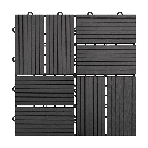 【HY】 ウッドデッキ 人工木 樹脂 ウッドパネル ウッドタイル 27枚入り 厚さ22mm 全6色 3タイプ ジョイントタイル デッキ 腐りにくい ガーデン ベランダ庭 玄関 (Cタイプ_27枚, ブラック)