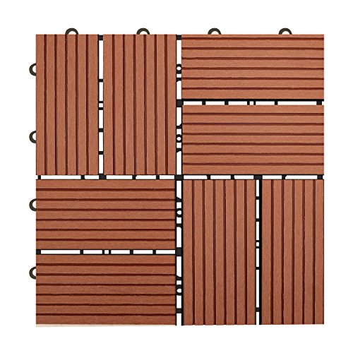 【HY】 ウッドデッキ 人工木 樹脂 ウッドパネル ウッドタイル 27枚入り 厚さ22mm 全6色 3タイプ ジョイントタイル デッキ 腐りにくい ガーデン ベランダ庭 玄関 (Cタイプ_27枚, レッド)