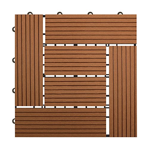 【HY】 ウッドデッキ 人工木 樹脂 ウッドパネル ウッドタイル 27枚入り 厚さ22mm 全6色 3タイプ ジョイントタイル デッキ 腐りにくい ガーデン ベランダ庭 玄関 (Bタイプ_27枚, ライトブラウン)