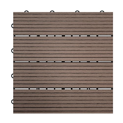 【HY】 ウッドデッキ 人工木 樹脂 ウッドパネル ウッドタイル 27枚入り 厚さ22mm 全6色 3タイプ ジョイントタイル デッキ 腐りにくい ガーデン ベランダ庭 玄関 (Aタイプ_27枚, ダークブラウン)