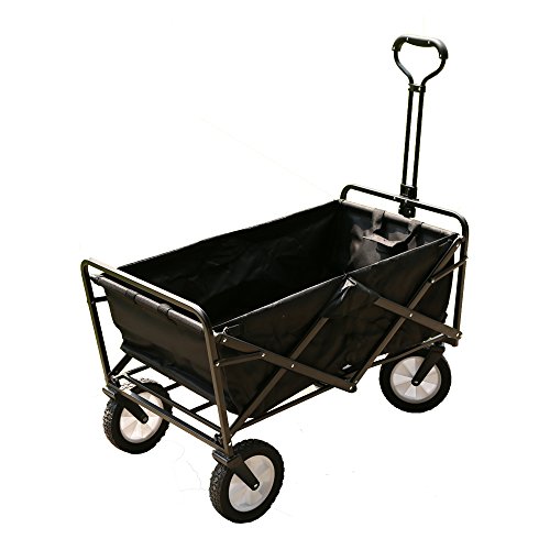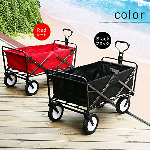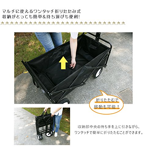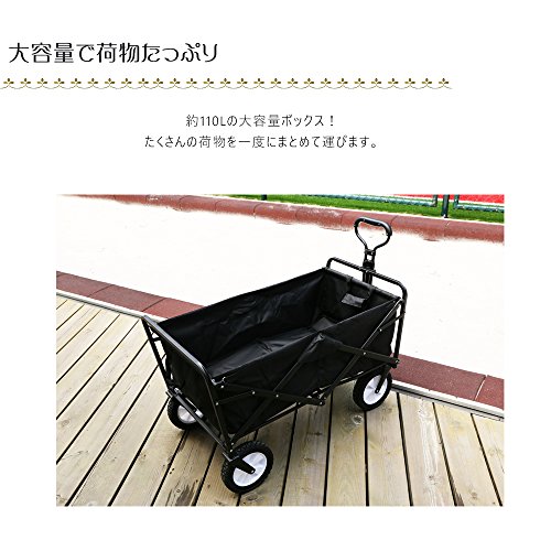 [SUN] キャリーワゴン 折りたたみ 台車 キャリーカート アウトドア 大型タイヤ 110L 耐荷重150kg 収納袋付き (ブラック)