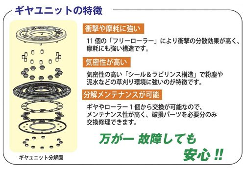 刈り取り方式:上・下低速回転ハサミ刈り方式