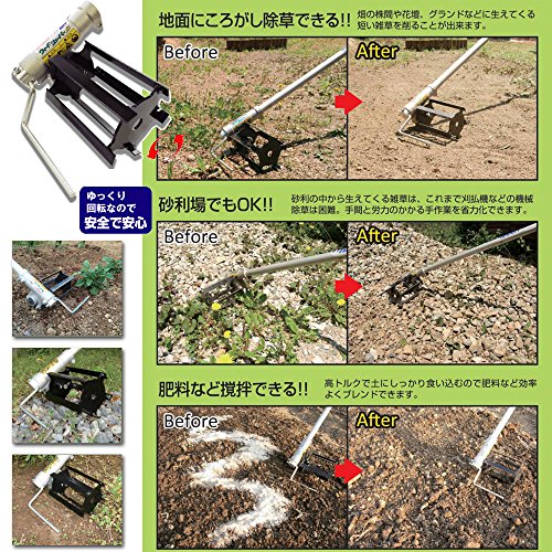 - 用途:畑・グランド・砂利場などの草削り。肥料などの撹拌。