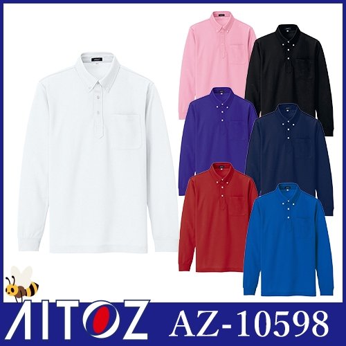 吸汗速乾(クールコンフォート)長袖ボタンダウンポロシャツ(男女兼用) カラー:008ネイビー サイズ:LL
