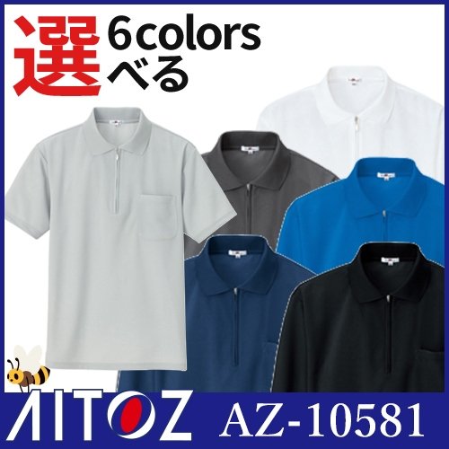 吸汗速乾(クールコンフォート)半袖ジップポロシャツ(男女兼用) カラー:001ホワイト サイズ:M