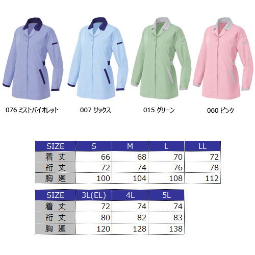 アイトス 長袖サマースモック(春夏用) AZ-5327 076 ミストバイオレット×ネイビー 4Lサイズ