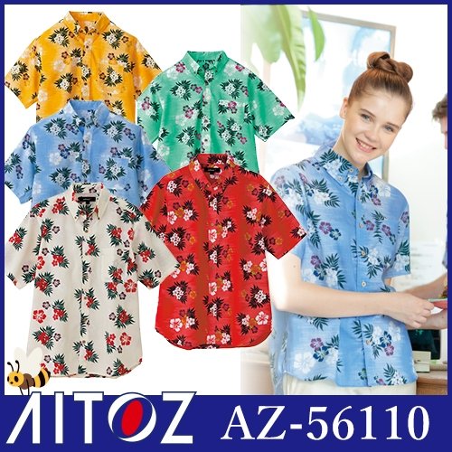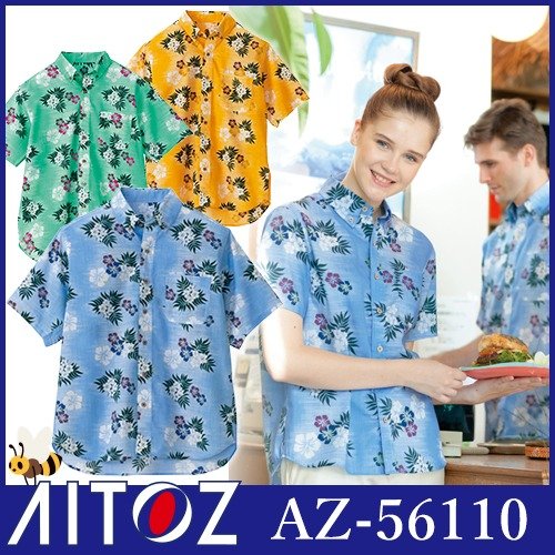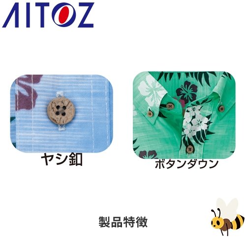 アイトス 大きいサイズ(3L) ボタンダウンアロハシャツ(カジーマ)(男女兼用) 015/グリーン AZ-56110
