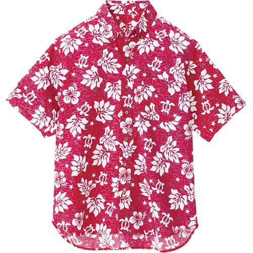 [アイトス] ボタンダウンアロハシャツ(ハワイの夜)(男女兼用) 009/レッド AZ-56109 L