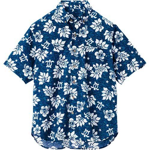 [アイトス] ボタンダウンアロハシャツ(ハワイの夜)(男女兼用) 008/ネイビー AZ-56109 L