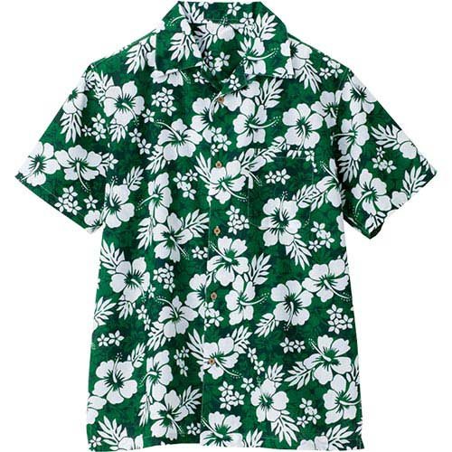 アロハシャツ ハイビスカス (男女兼用) カラー:015グリーン サイズ:3S