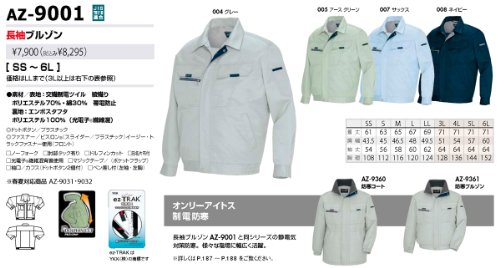 秋冬物 AITOZ アイトス 長袖ブルゾン AZ-9001 007サックス L
