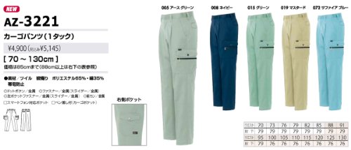 秋冬物 AITOZ アイトス カーゴパンツ(1タック) AZ-3221 008ネイビー 95