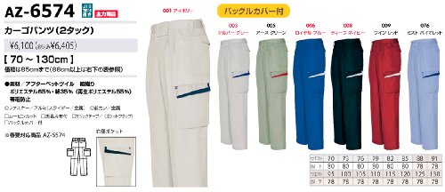秋冬物 AITOZ アイトス カーゴパンツ(2タック) AZ-6574 008ディープネイビー 105