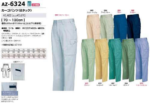 秋冬物 AITOZ アイトス カーゴパンツ(2タック) AZ-6324 002ライトベージュ 100