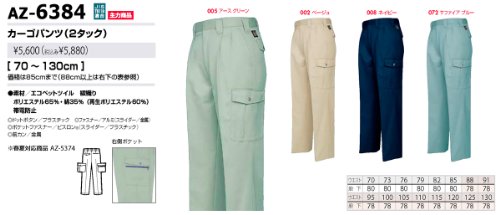 秋冬物 AITOZ アイトス カーゴパンツ(2タック) AZ-6384 005アースグリーン 125