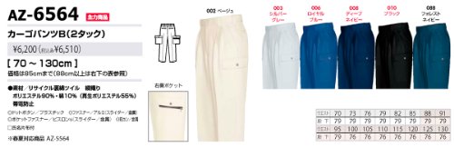 秋冬物 AITOZ アイトス カーゴパンツB(2タック) AZ-6564 010ブラック 120