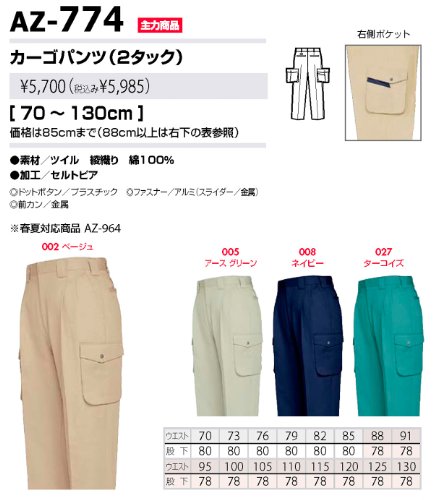 秋冬物 AITOZ アイトス ワークパンツ(2タック) AZ-774 027ターコイズ 82