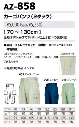 秋冬物 AITOZ アイトス カーゴパンツ(2タック) AZ-858 008ネイビー 82