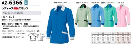 秋冬物 AITOZ アイトス レディース長袖スモック AZ-6366 007サックス M