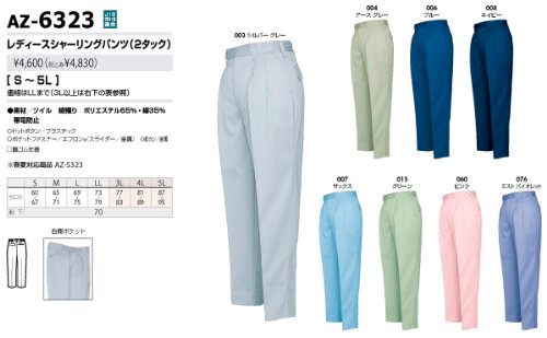 秋冬物 AITOZ アイトス レディースシャーリングパンツ(2タック) AZ-6323 007サックス L
