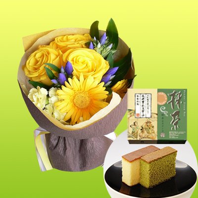 退職祝い 誕生日 花 父親 祖父 プレゼント 長崎堂 カステーラ詰合せ & 黄色い花束