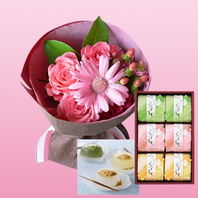 誕生日プレゼント 花 母親 祖母 吉野のくずもち & ピンクの花束
